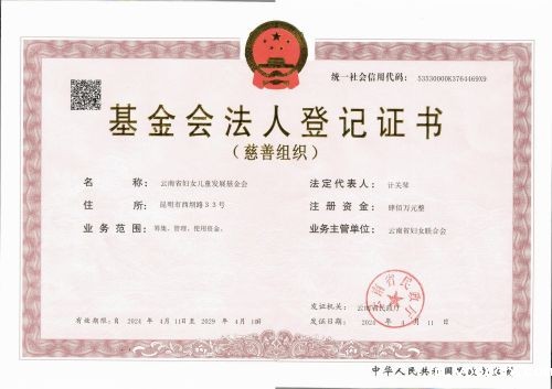 基金会实行理事会届任制,每届任期五年,现有理事9名,监事3名,下设办公室为日常办事机构,现有专(兼)职人员6名。基金会设有固定的办公场所,原始基金400万元。2016年12月通过云南省首批慈善组织认定,并获得向社会公开募捐和非盈利社会组织免税资格。2020年7月评定为4A级社会组织。