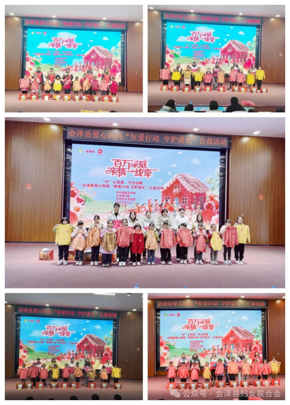 紧接着,爱心妈妈代表将爱心妈妈们编织的爱心毛衣和新春礼包,发放给孩子们,活动现场弥漫着浓浓的爱的氛围。