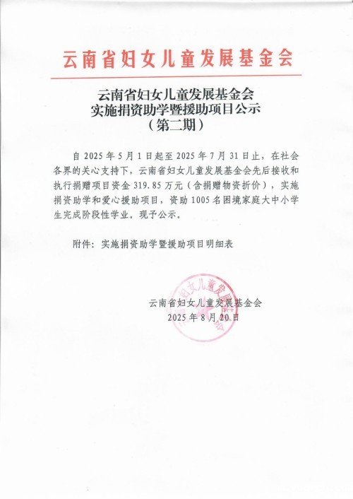 详情请点击:2025年实施捐资助学暨援助项目公示(第二期)